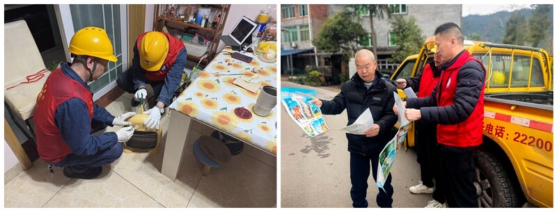 社区里,志愿者们迅速转换角色,成为电力安全“排查官”与贴心“讲解员”。在悦城、新桥、张家湾等社区,技术服务组的志愿者们深入独居老人、残障人士家中,以专业的技术和高度的责任感,仔细排查室内线路老化、插座接触不良等隐患。他们当场更换老旧开关,维修小家电,让这些特殊群体的生活用电更加安全可靠。78岁的王大爷激动地紧握着志愿者的手,满含感激地说道:“连烤火炉都帮我修好,太贴心啦!”与此同时,安全宣传组在小区广场设立咨询台,通过发放宣传手册、现场演示等方式,向居民普及安全用电、绿色能源及森林防灭火知识。此次活动共发放宣传资料500余份,现场解答居民咨询100余人次,进一步提升了居民的安全意识和环保理念。