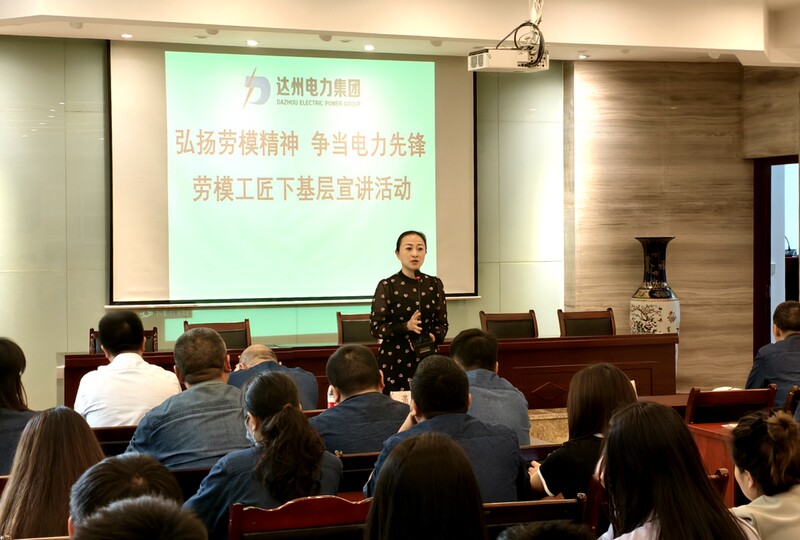 为深入学习贯彻党的二十大精神,弘扬劳模精神、劳动精神、工匠精神,激励职工立足岗位建功立业,集团工会在“五一”国际劳动节前夕,组织开展“弘扬劳模精神 争当电力先锋”主题宣讲活动。活动于2025年4月4月22日至25日在通川区、高新区、金通公司等三地举行,吸引近200名干部职工参与,集团党委委员、职工董事、工会主席董剑梅主持宣讲活动。