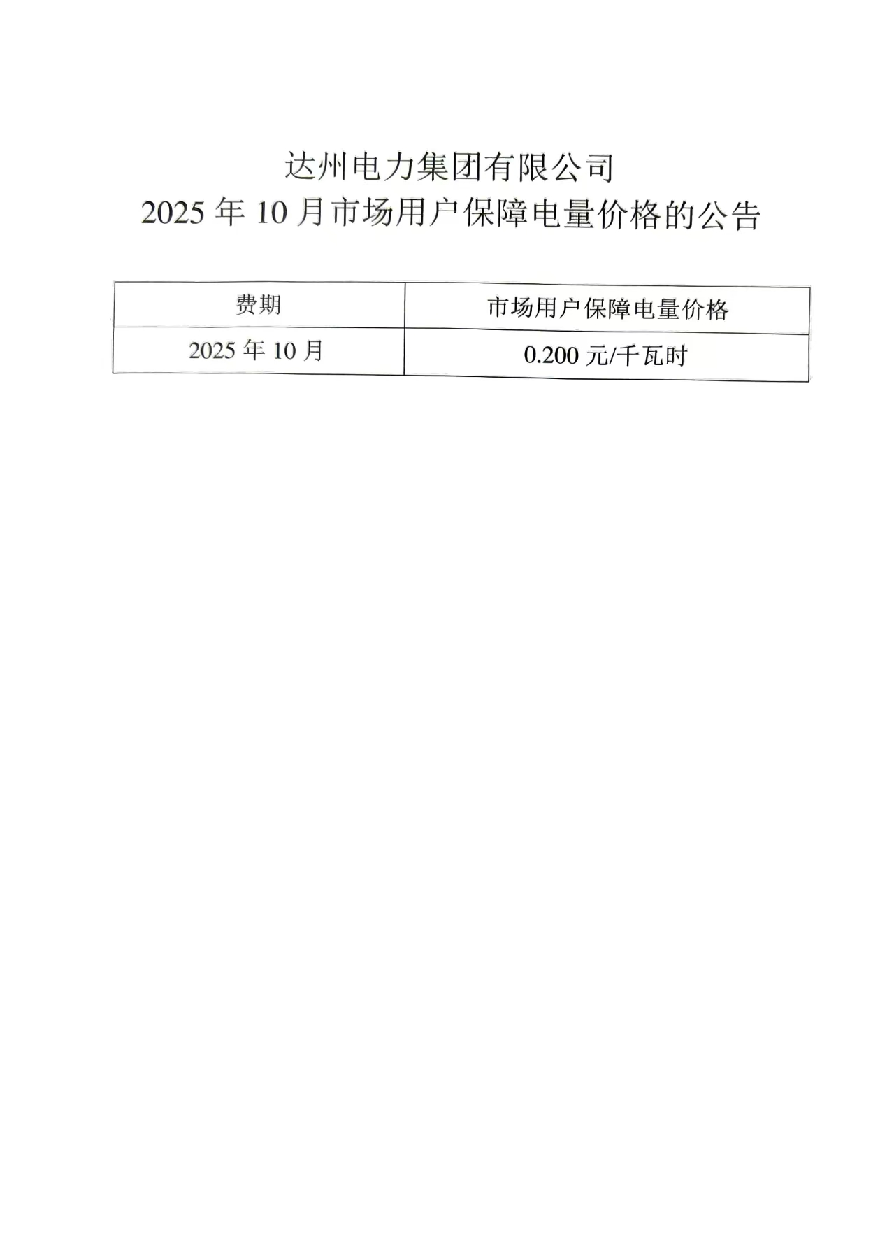 bw必威西汉姆联官方网站2025年10月市场用户保障电量价格的公告
