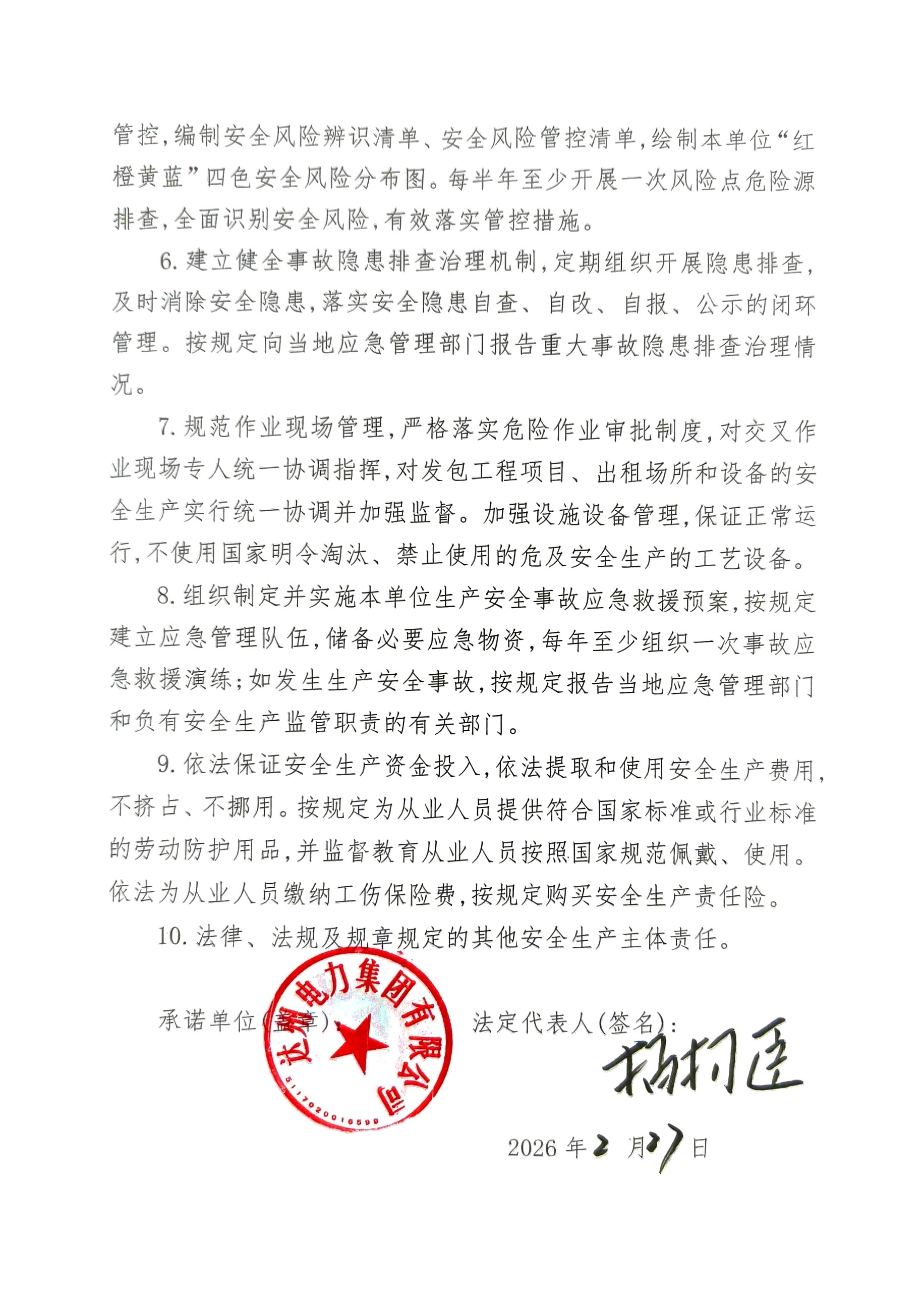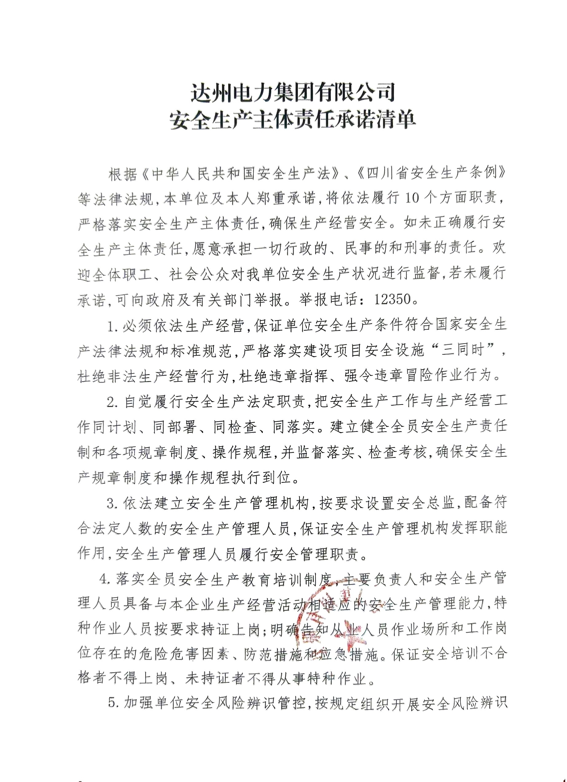 bw必威西汉姆联官方网站2026年安全生产主体责任承诺清单
